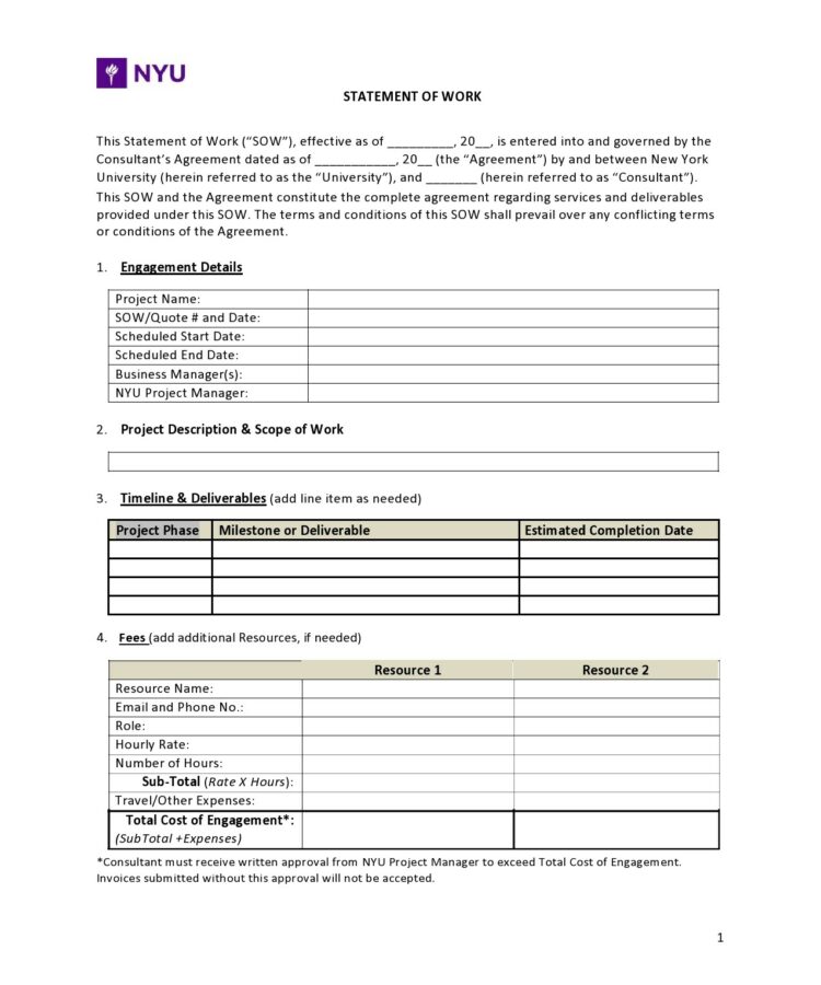 Free Statement Of Work Template Free Printable Templates