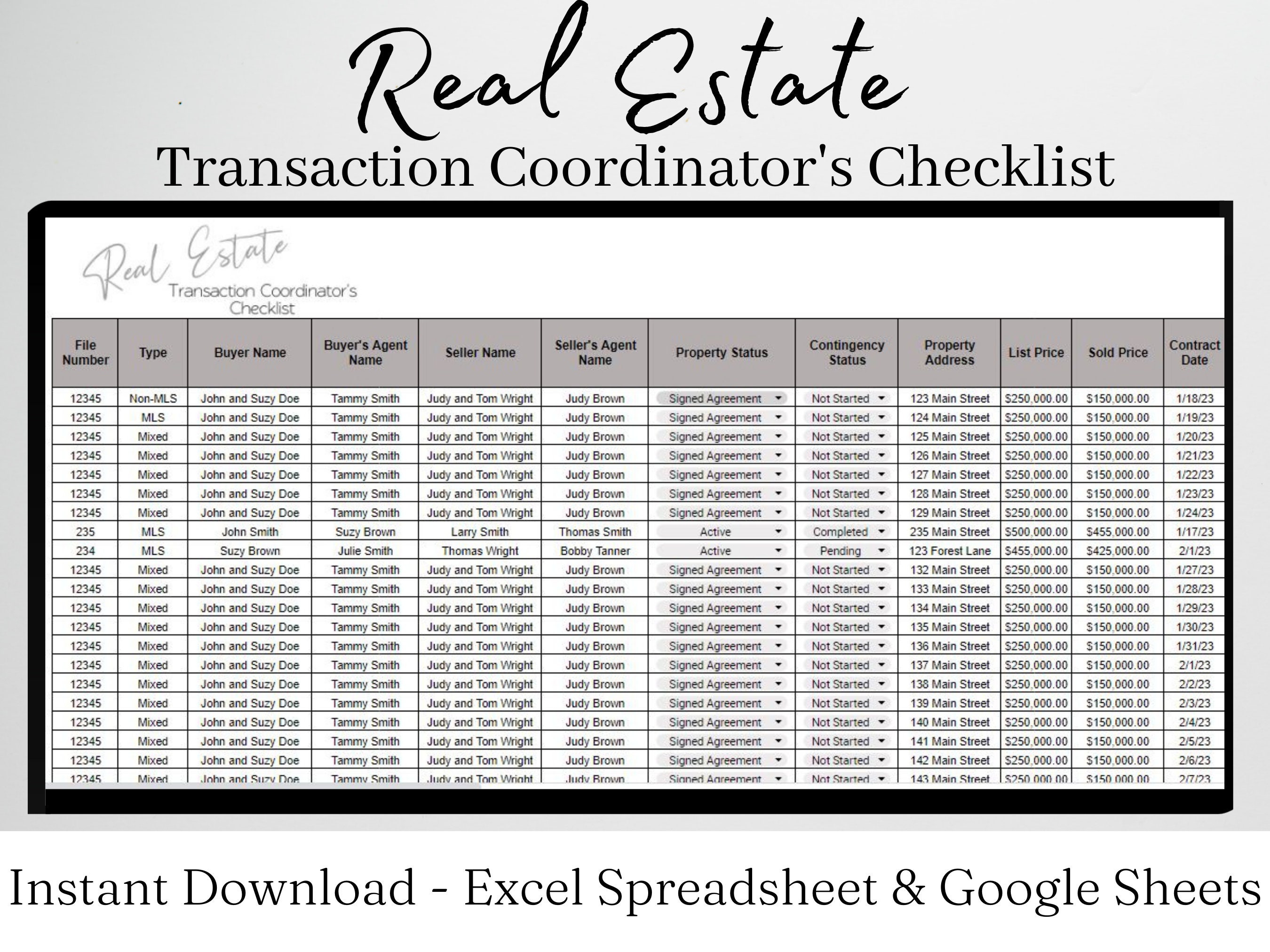 Real Estate Transaction Coordinator Excel Sheet Etsy