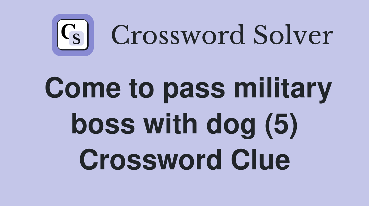 Come to pass military boss with dog (5) Crossword Clue Answers