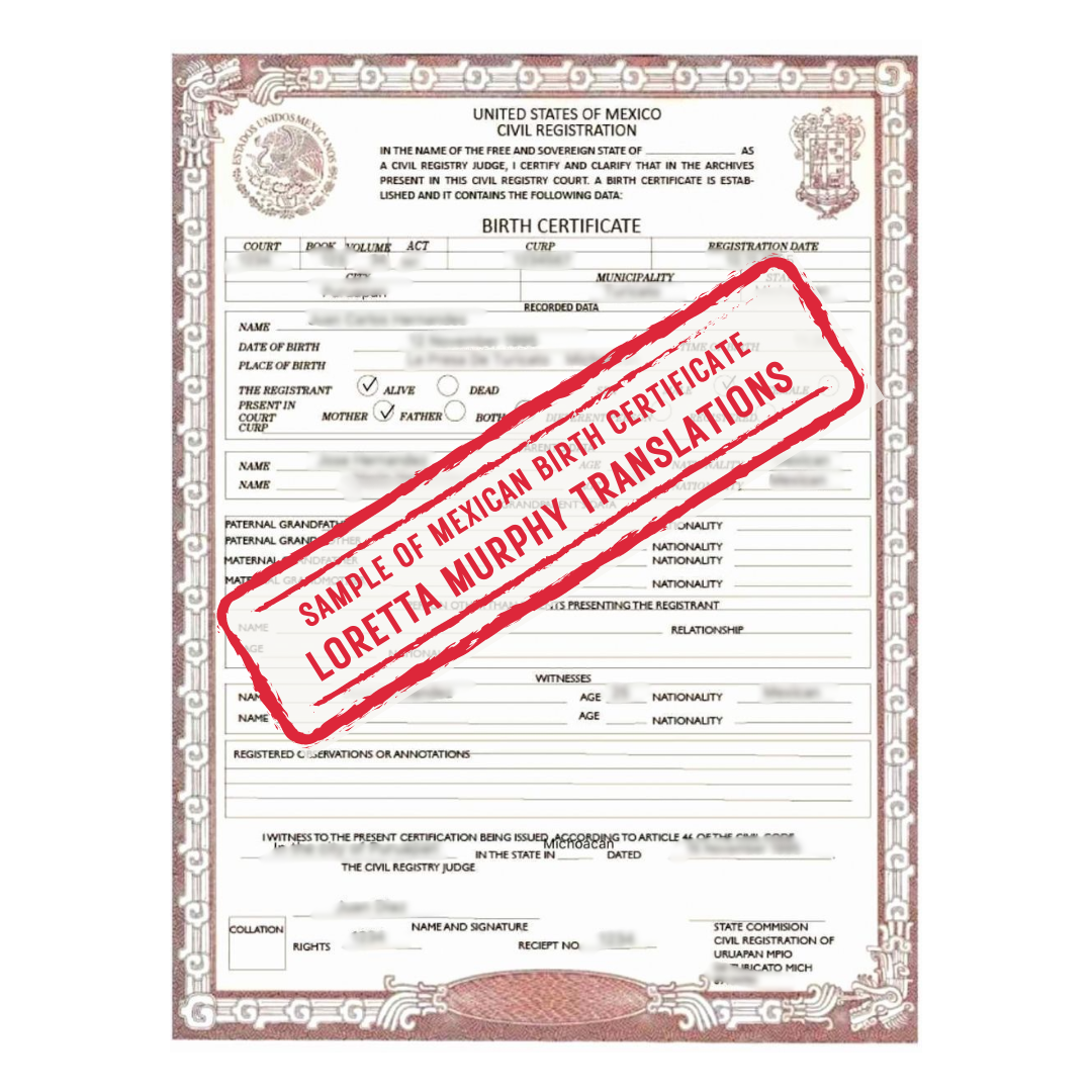 Mexican Birth Certificate Certified Translation Loretta Murphy