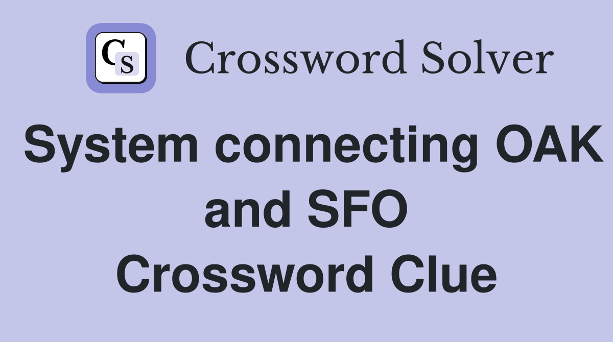 System connecting OAK and SFO Crossword Clue Answers Crossword Solver