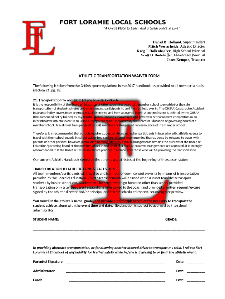 Athletic Responsibility Acknowledgement Transportation Waiver Doc