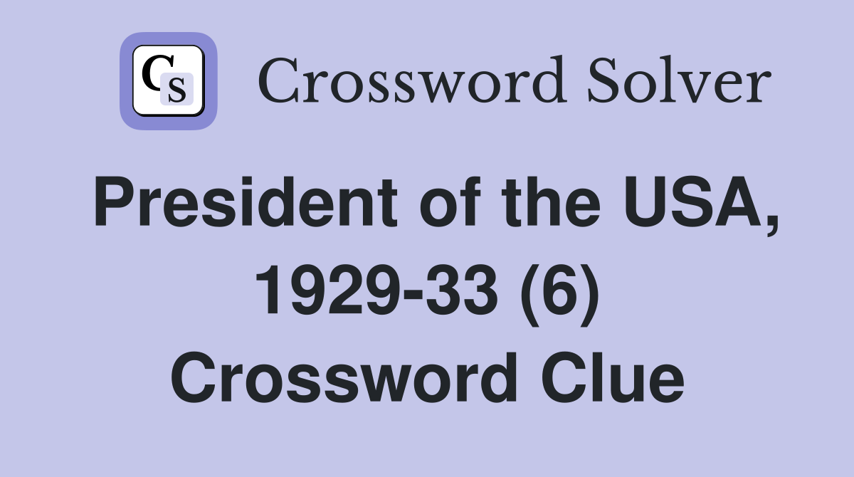 President of the USA 1929 33 (6) Crossword Clue Answers Crossword