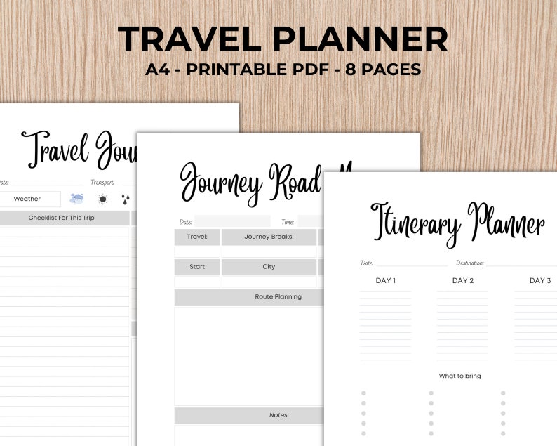 Travel Planner Printable PDF A4 8 Pages Etsy