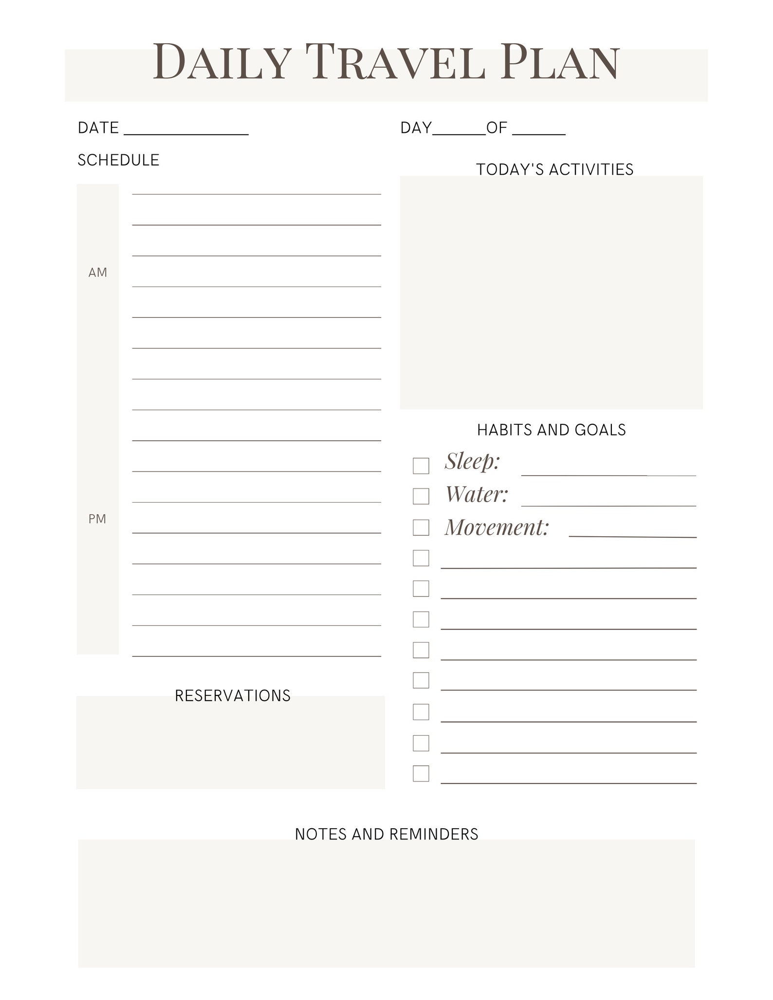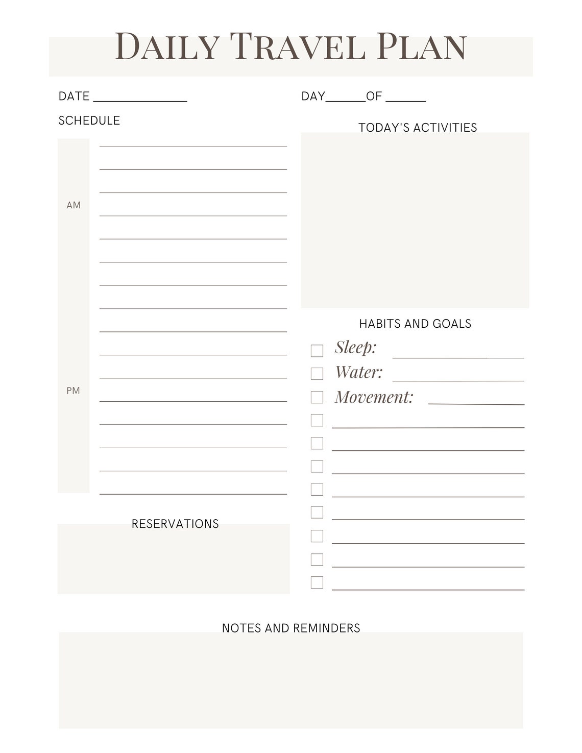 Printable Travel Planner Daily Itinerary to Do List Instant Etsy