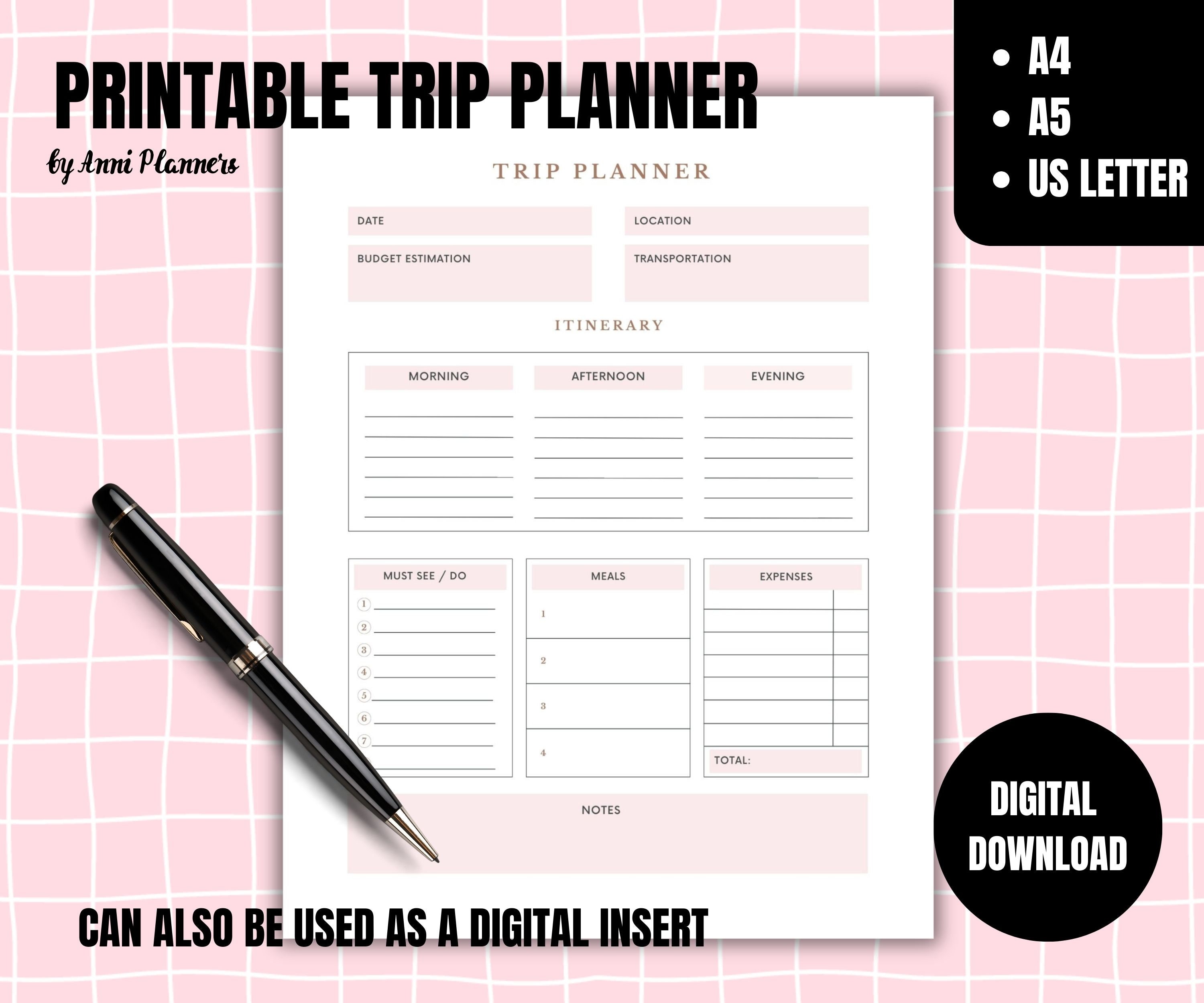 Trip Planner Itinerary Template Fillable Printable Digital PDF Trip