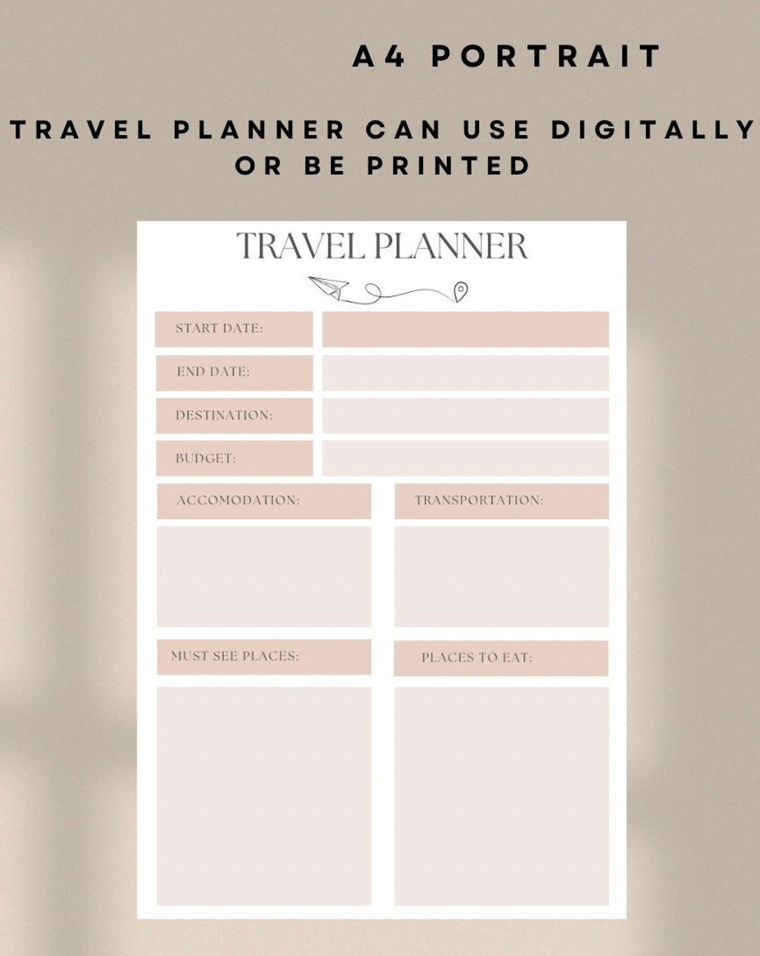 Free Travel Planner PDF Printable 8 5x11 inch A4 size For journal