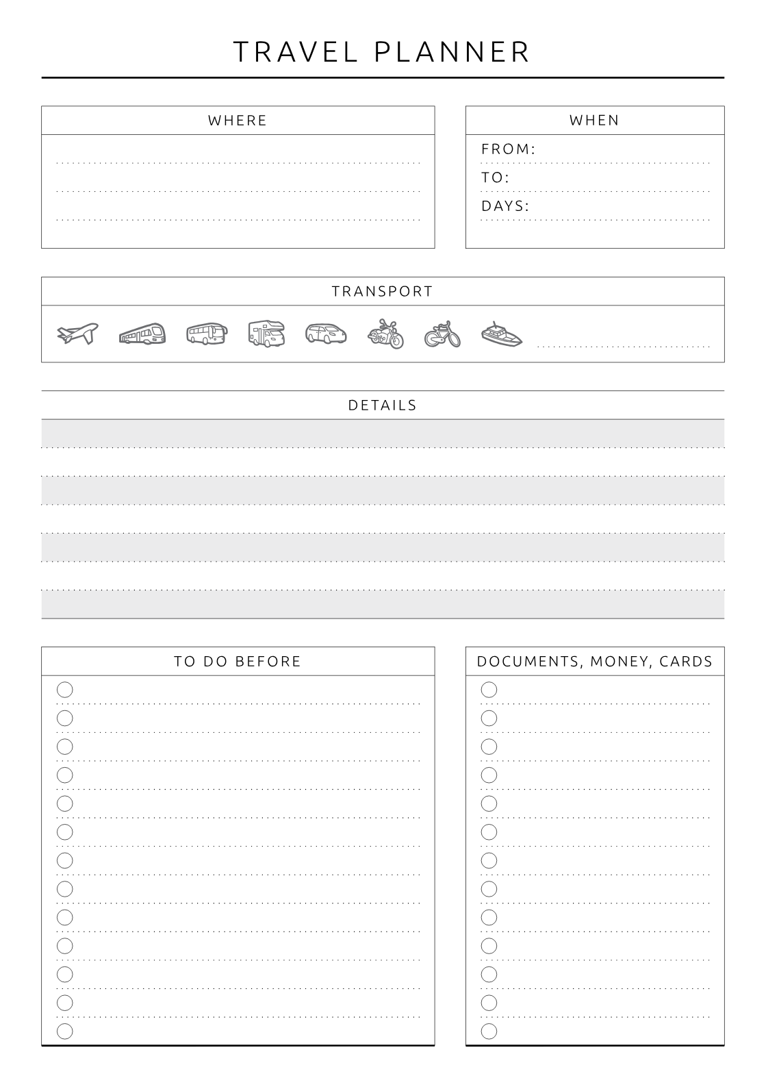 Travel Itinerary Planner Printable Minimalistic Travel Planner
