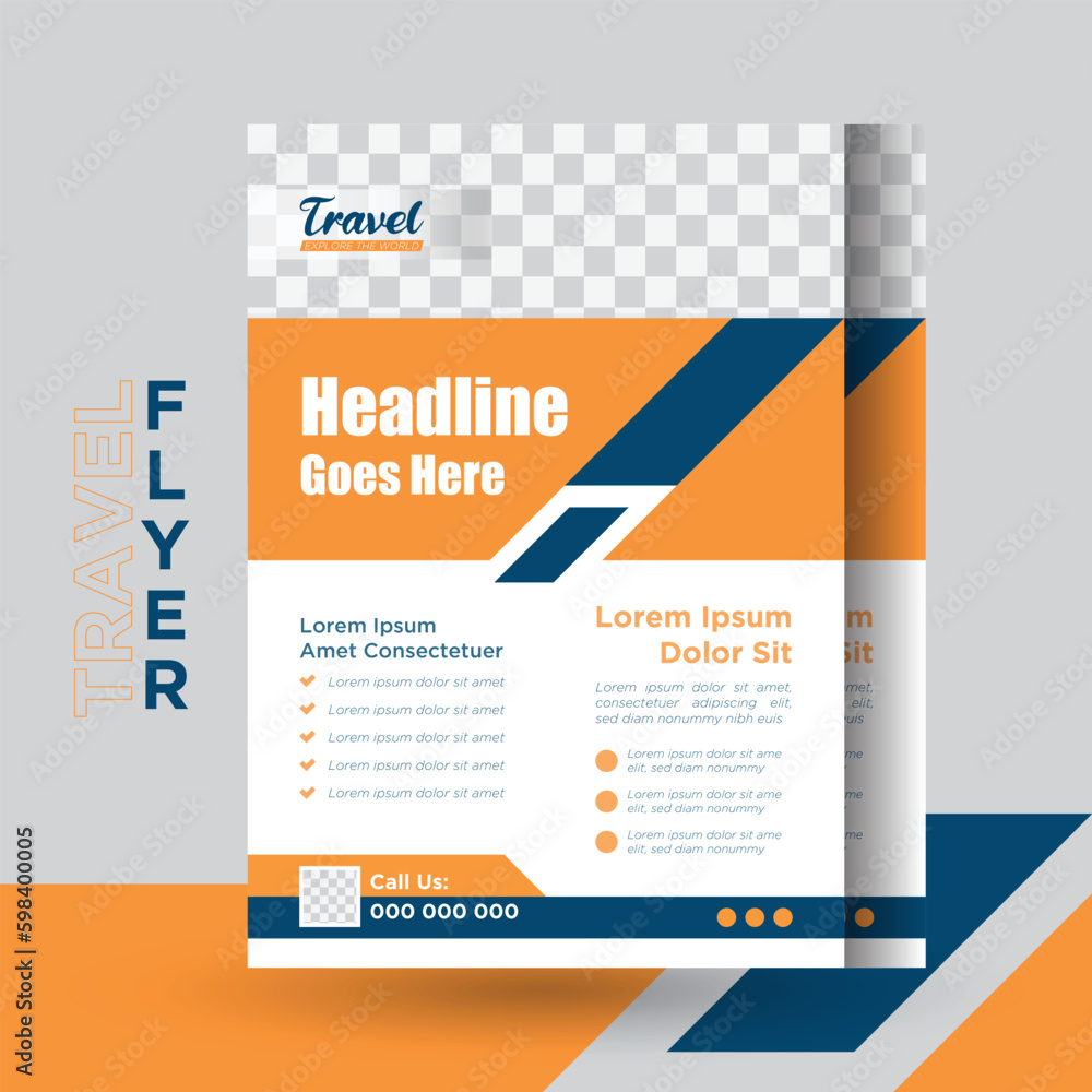 Travel flyer poster or pamphlet brochure design for photo background