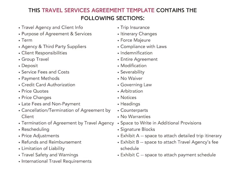 Printable Travel Services Agreement Template Businessinabox™ Travel