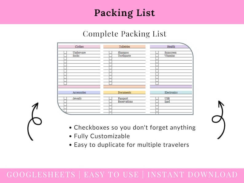 Travel Planner Google Sheets Travel Spreadsheet Template Etsy