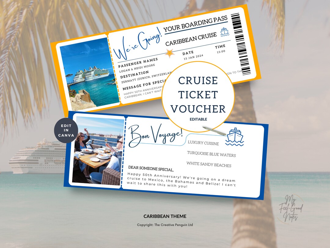 Ticket Voucher Template Cruise Printable Gift Ship Boarding Pass PDF