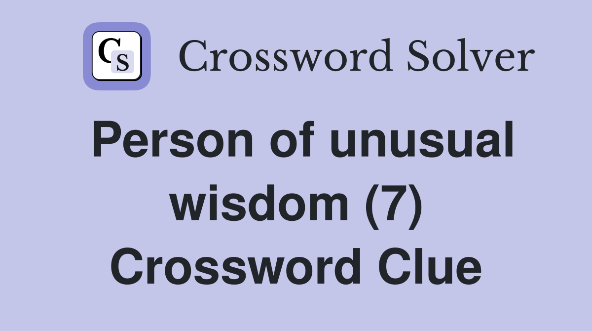 Person of unusual wisdom (7) Crossword Clue Answers Crossword Solver