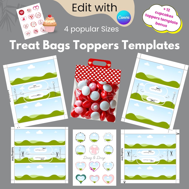 Treat Bag Topper Template Editable Bag Topper Canva Editable Template