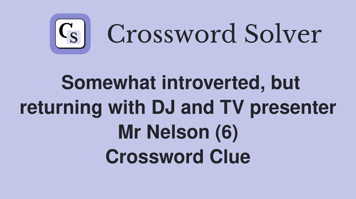 Somewhat introverted but returning with DJ and TV presenter Mr Nelson