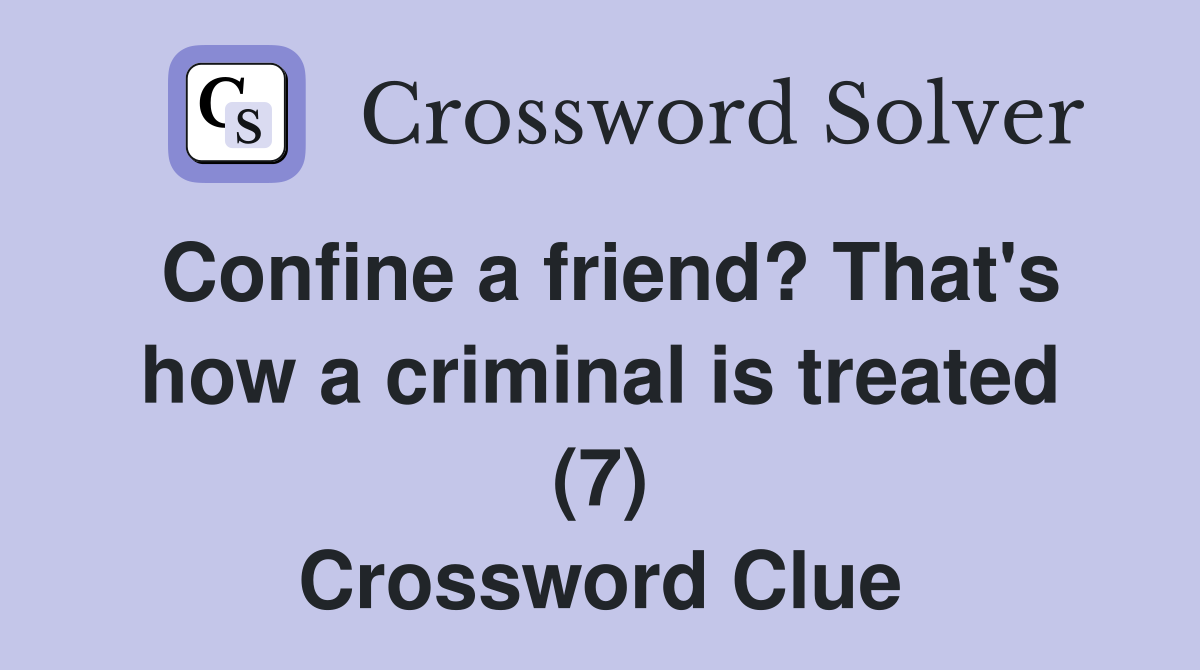 Confine a friend? That s how a criminal is treated (7) Crossword Clue
