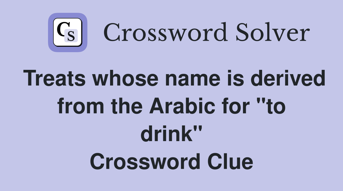 Treats whose name is derived from the Arabic for quot to drink quot Crossword