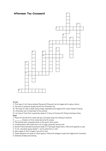 Afternoon Tea crossword Teaching Resources