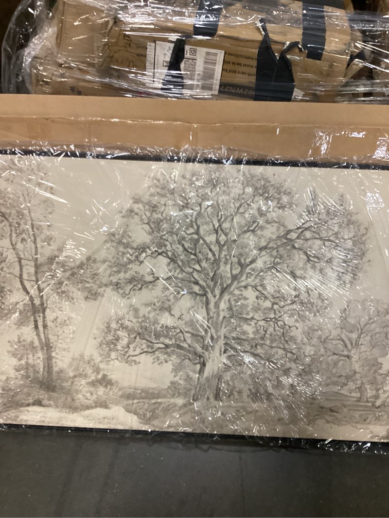 Rustic Countryside Vintage Landscape Sketch Tree and Landscape Pattern