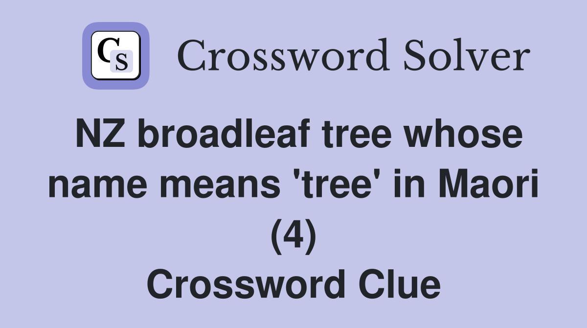 NZ broadleaf tree whose name means tree in Maori (4) Crossword Clue