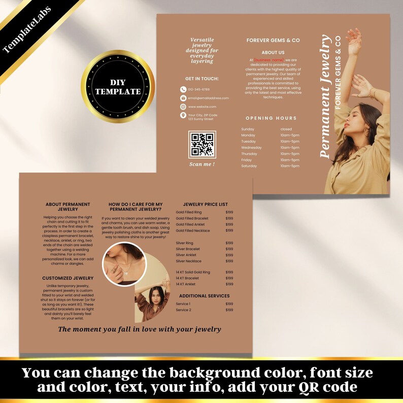Permanent Jewelry Branding Tri Fold Brochure Template Canva Brochure