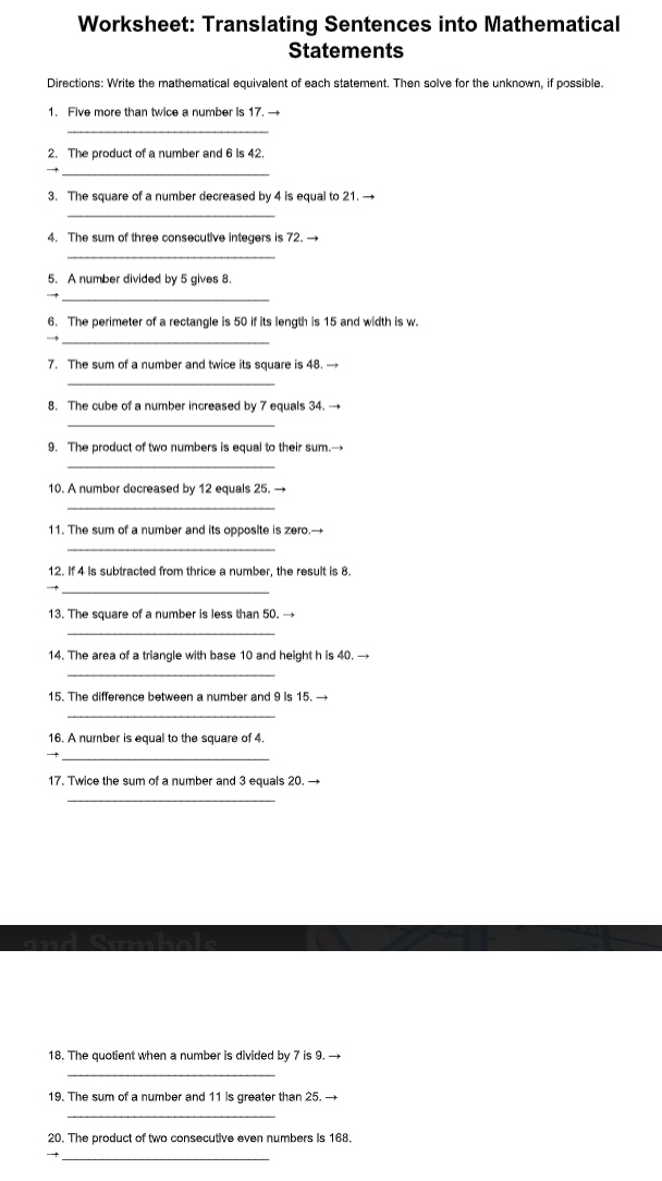 Solved: Worksheet: Translating Sentences into Mathematical Statements