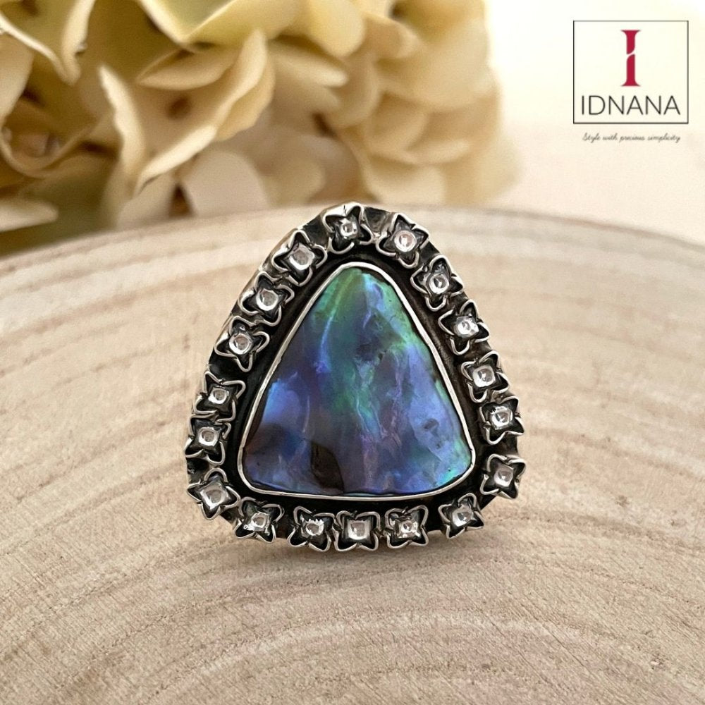 ABALONE SHELL KUNDAN TRIANGULAR FINGER RING Idnana Creation