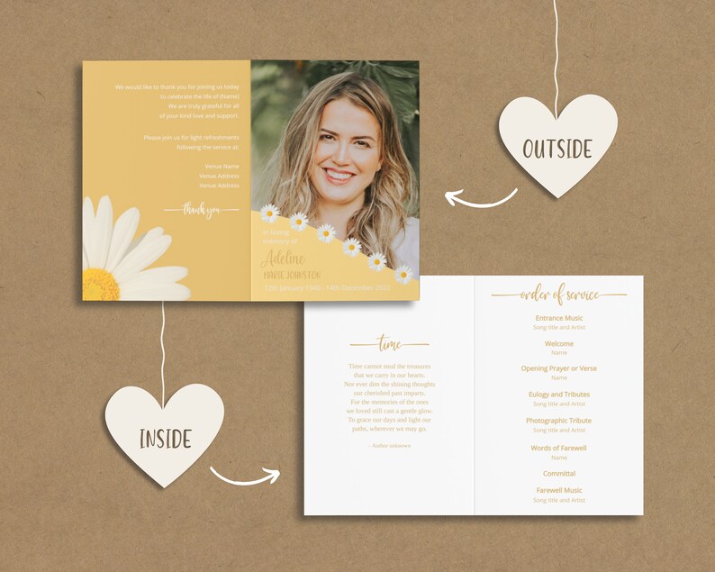 Editable Daisy Memorial Program Template Digital Download Printable