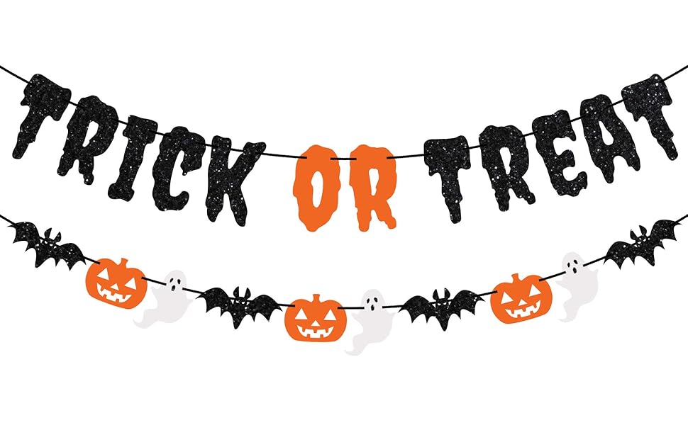 Amazon com: Pre Strung Trick or Treat Banner NO DIY Black Glitter