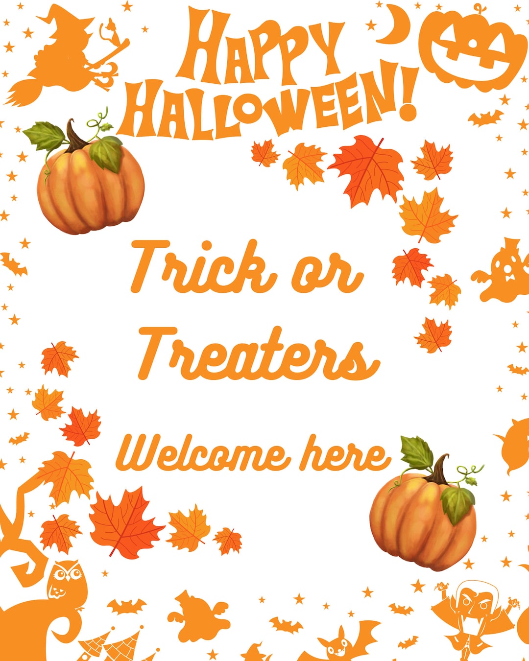 Trick or Treaters Welcome Here Printable Yard Sign Door Sign Etsy UK
