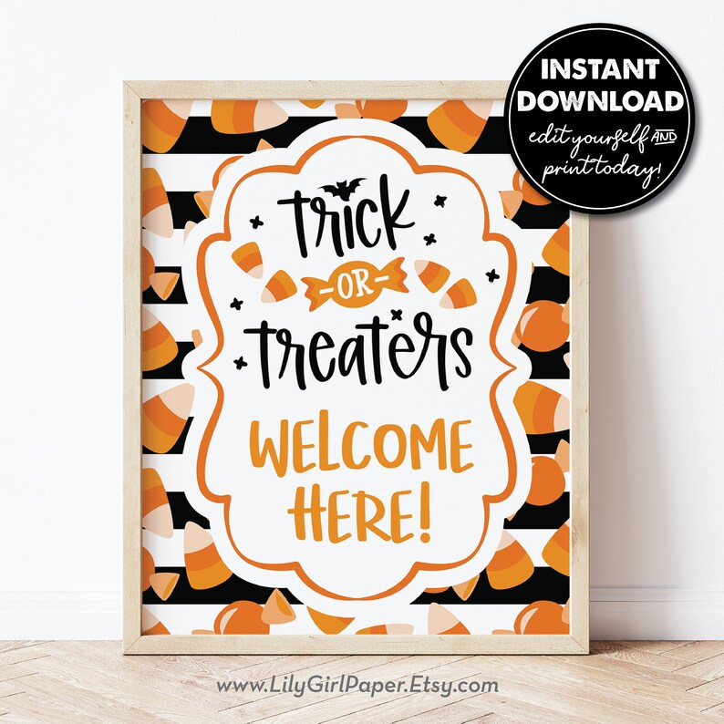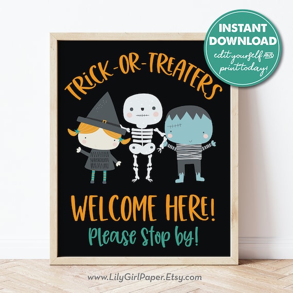 Trick or Treaters Welcome Here Printable Halloween Home Etsy