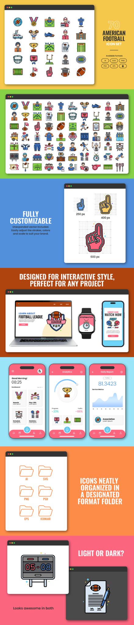 70 Gridiron Football Icon Set Flat Icons