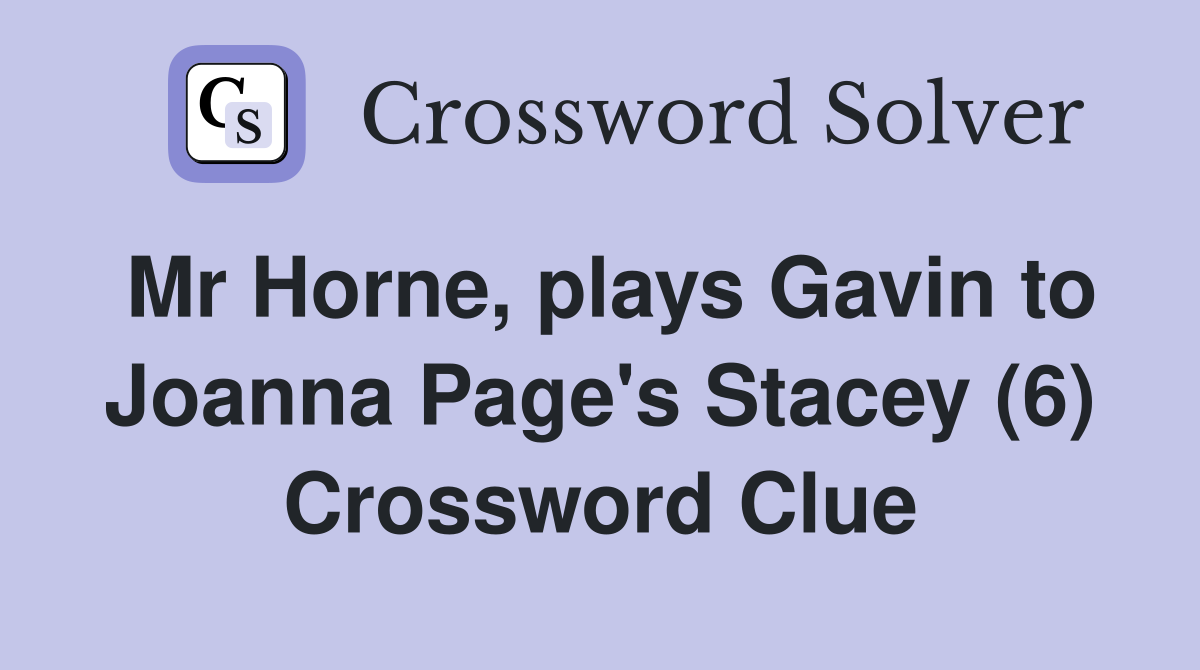 Mr Horne plays Gavin to Joanna Page #39 s Stacey (6) Crossword Clue
