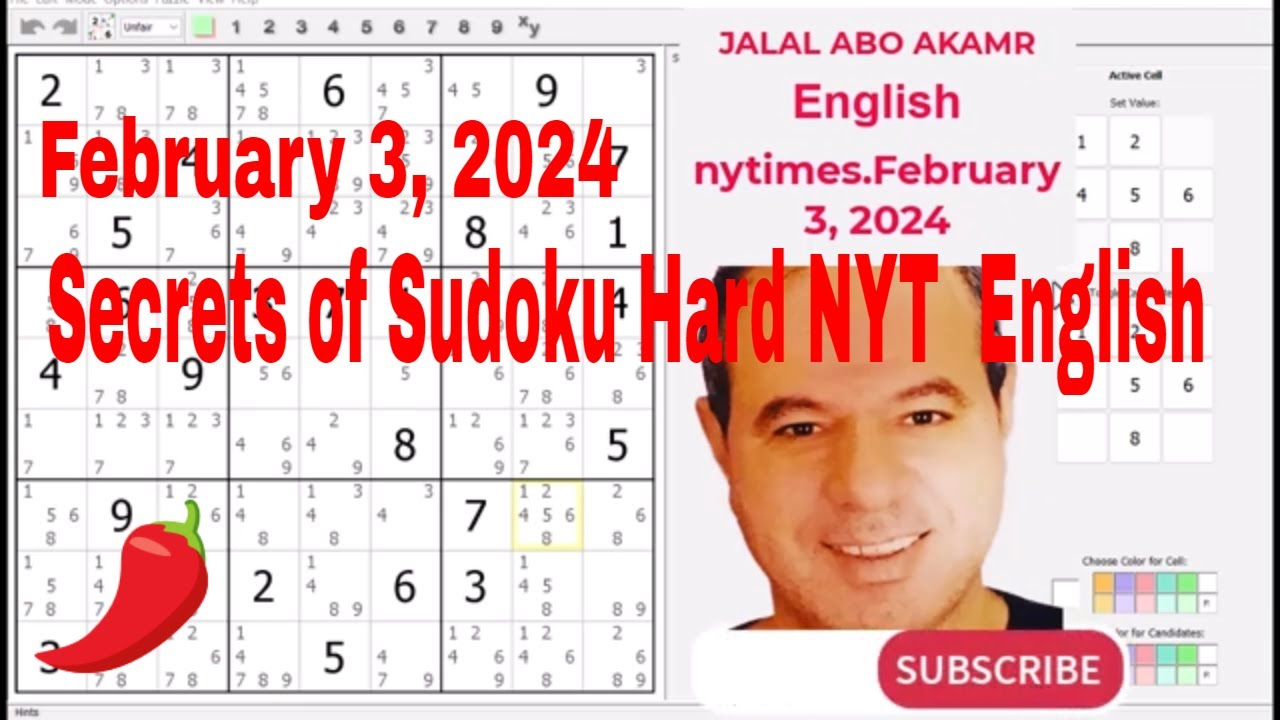 Secrets of Sudoku Hard NYT English February 3 2024 YouTube