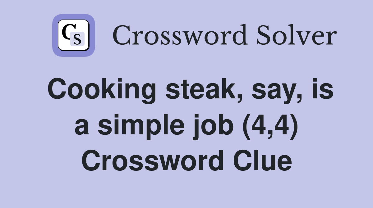Cooking steak say is a simple job (4 4) Crossword Clue Answers