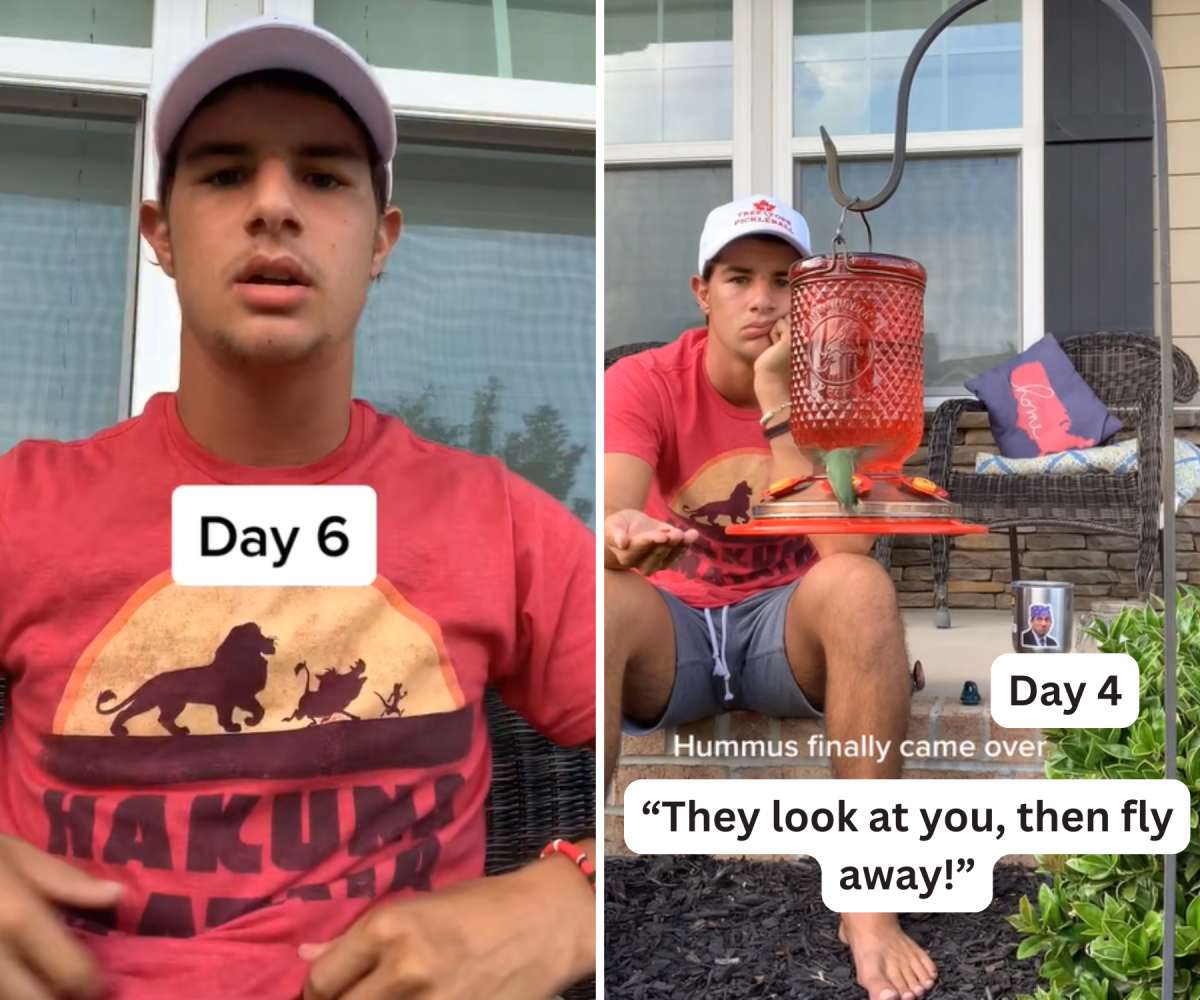 Guy Obsessed With a Hummingbird Tries Bizarre Tricks to Make It Land on