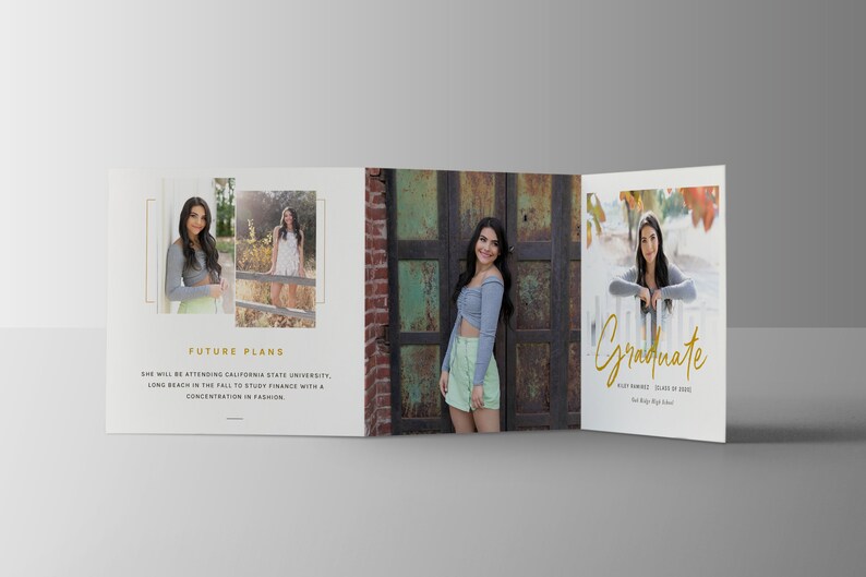 5x5 Trifold Graduation Announcement Card Senior Photographer Templates
