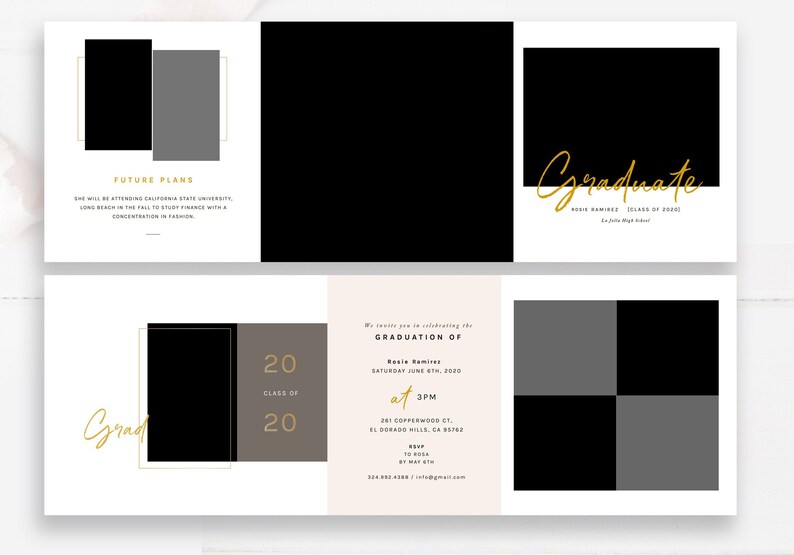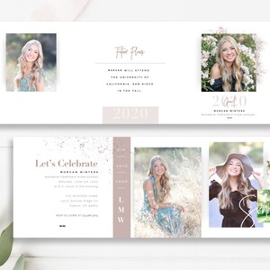 Rose Gold Trifold Graduation Announcement Template for Etsy