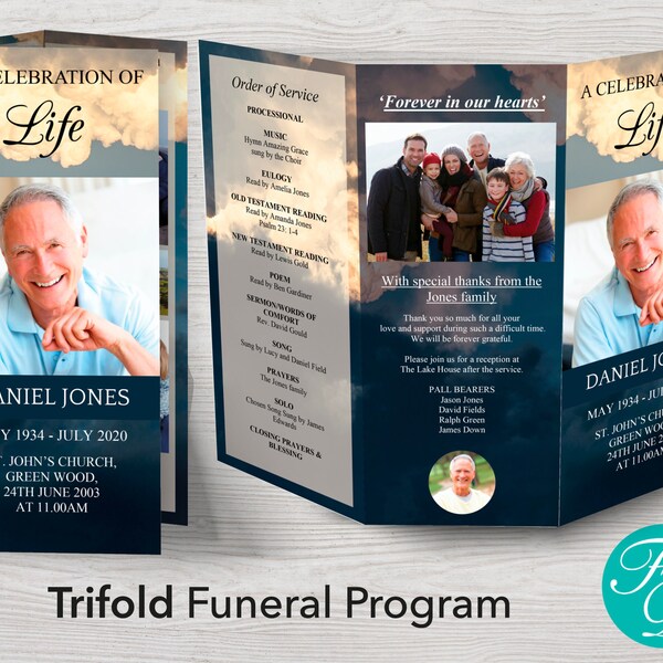 11x17 Trifold Funeral Program Template for Man Tabloid Etsy