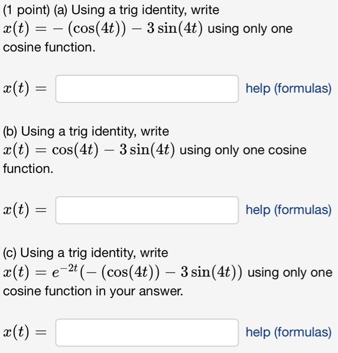 Solved (1 point) (a) Using a trig identity write Chegg com