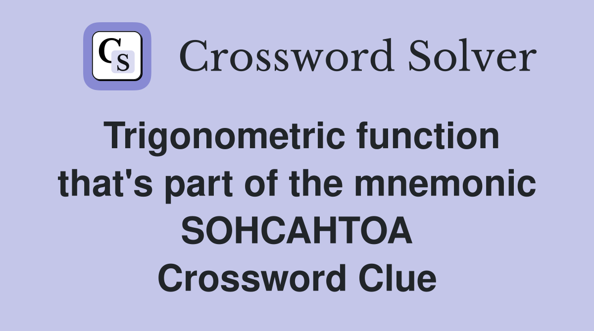 Trigonometric function Crossword Clue Answers Crossword Solver