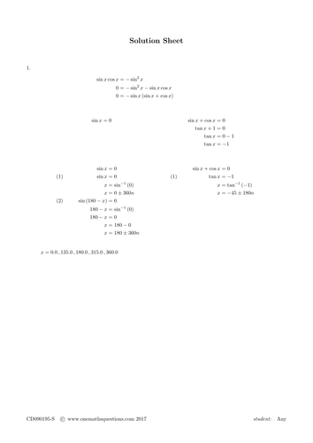Trigonometry Worksheets