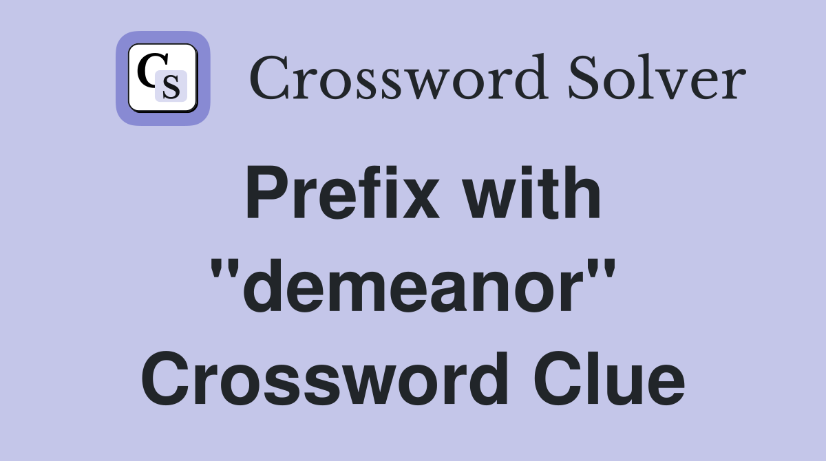 Prefix with quot demeanor quot Crossword Clue Answers Crossword Solver