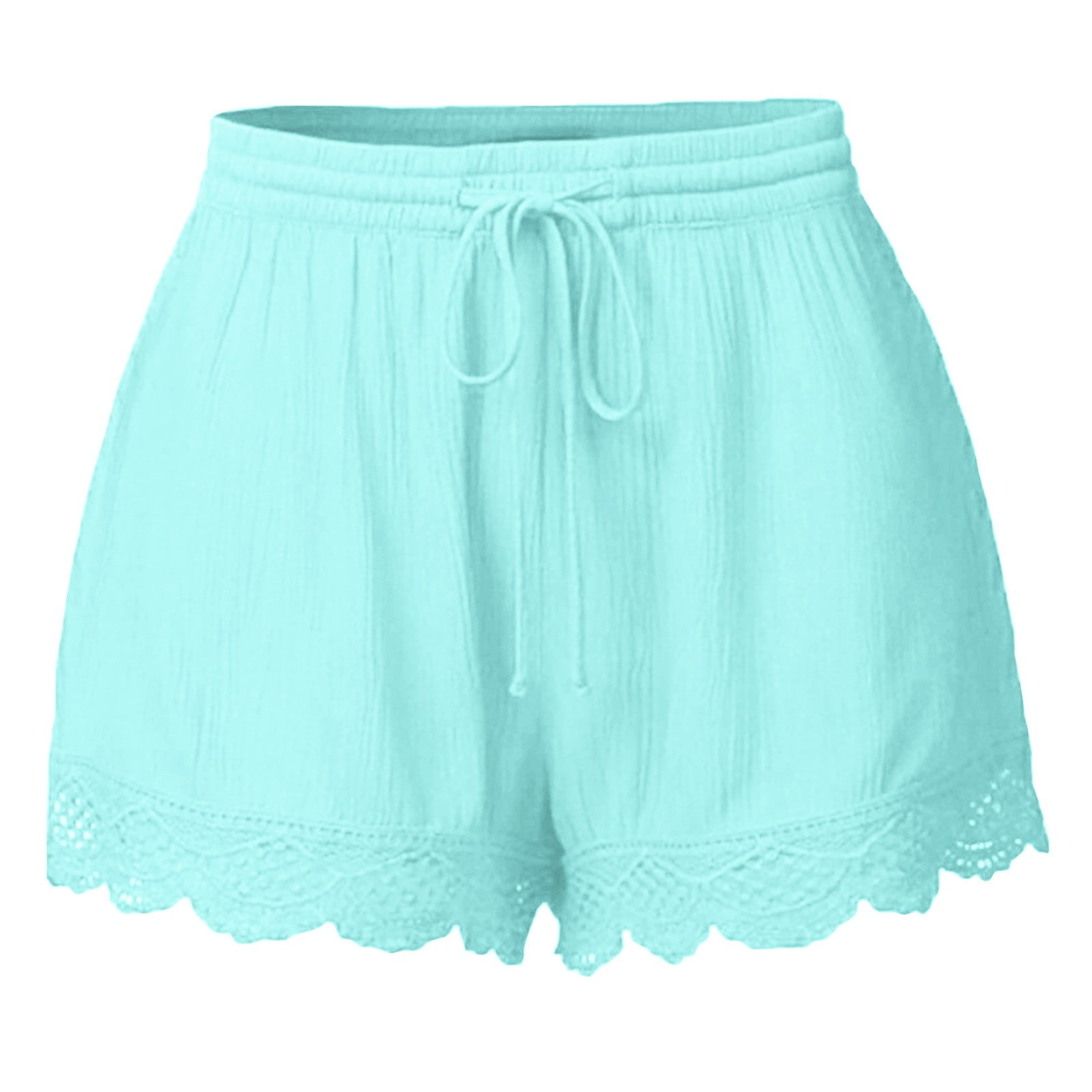 MIXUE Shorts For Women Summer Solid Color Elastic Waist Drawstring Lace
