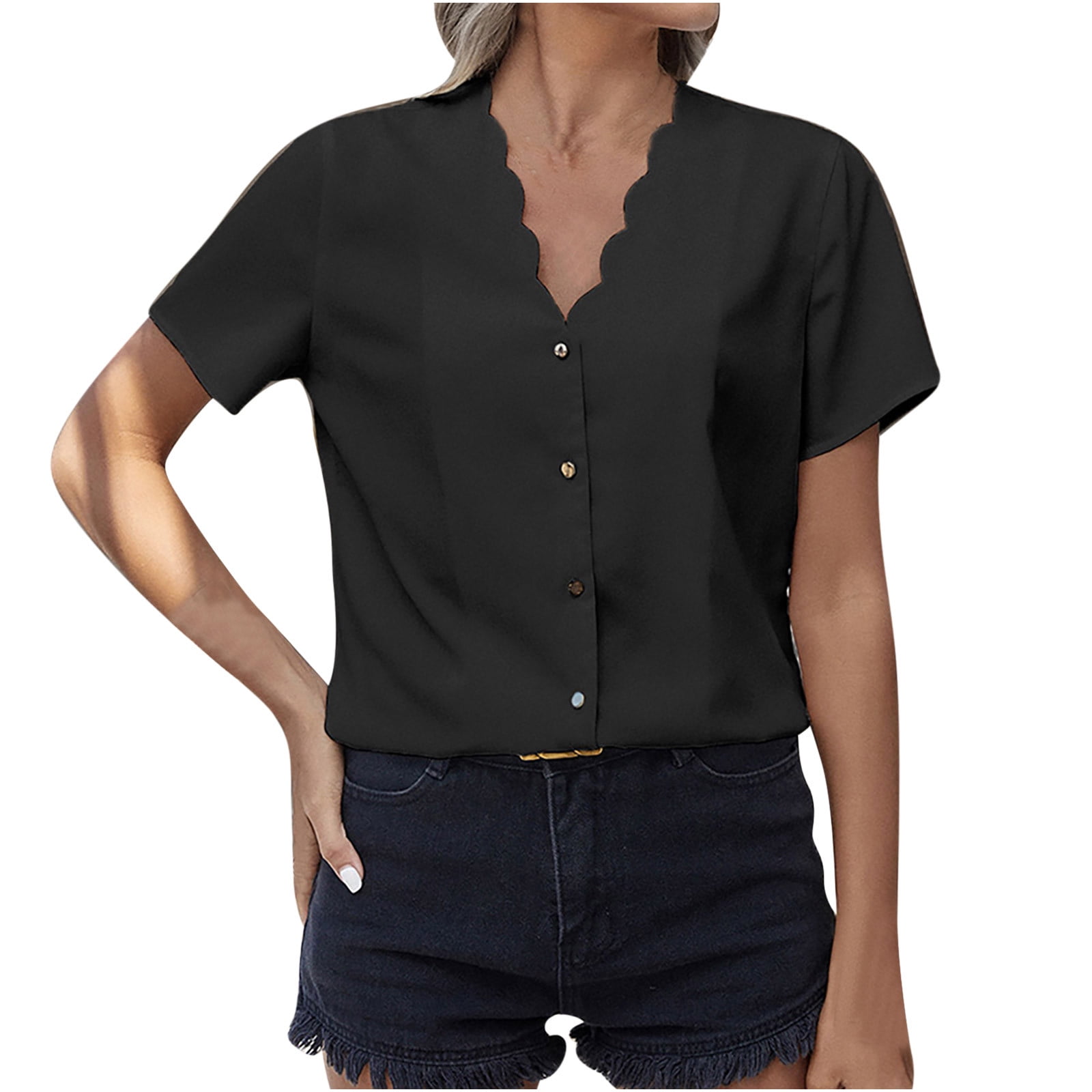 YYDGH Womens Short Sleeve Button Down Shirts V Neck Shell Trim Casual