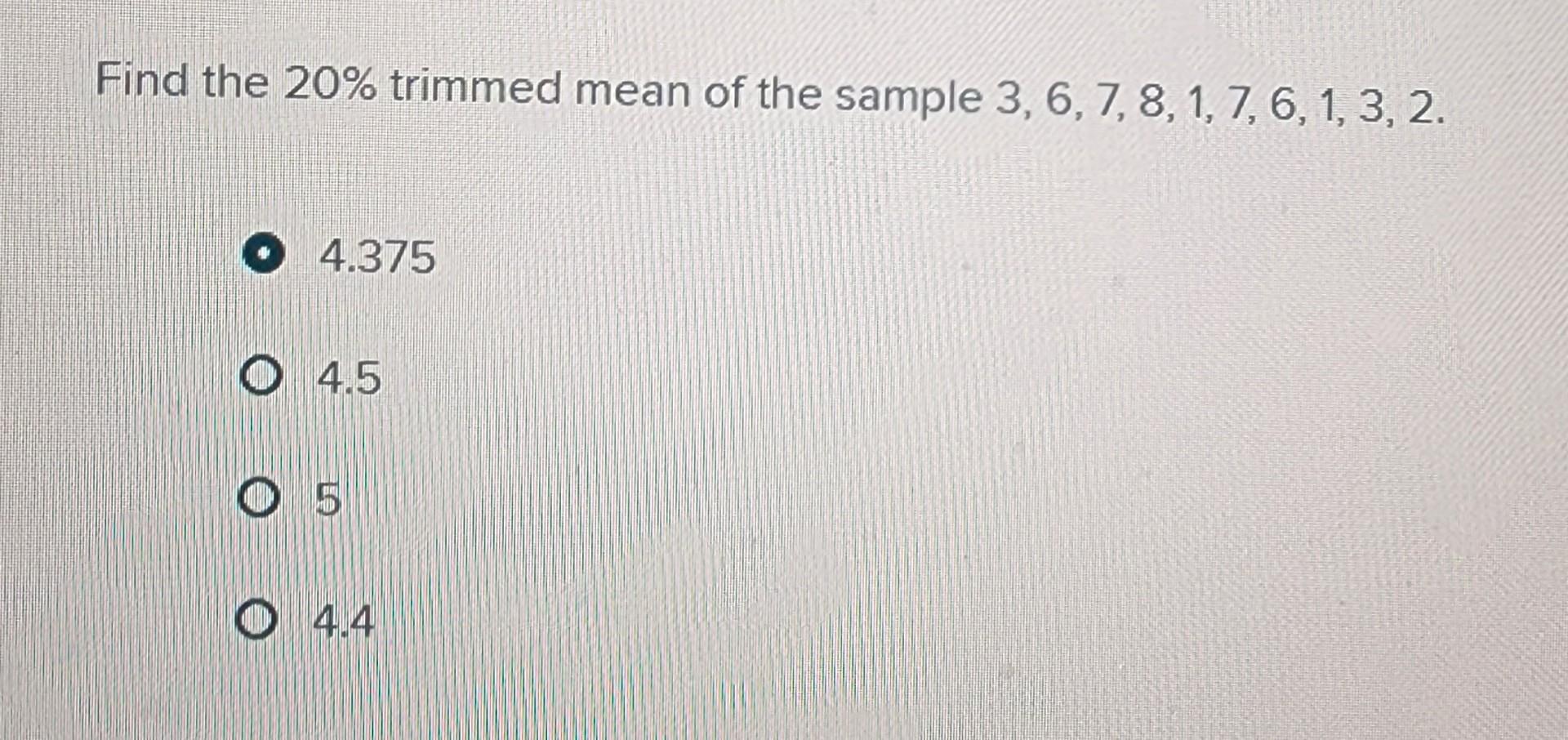 Solved Find the 20% trimmed mean of the sample Chegg com