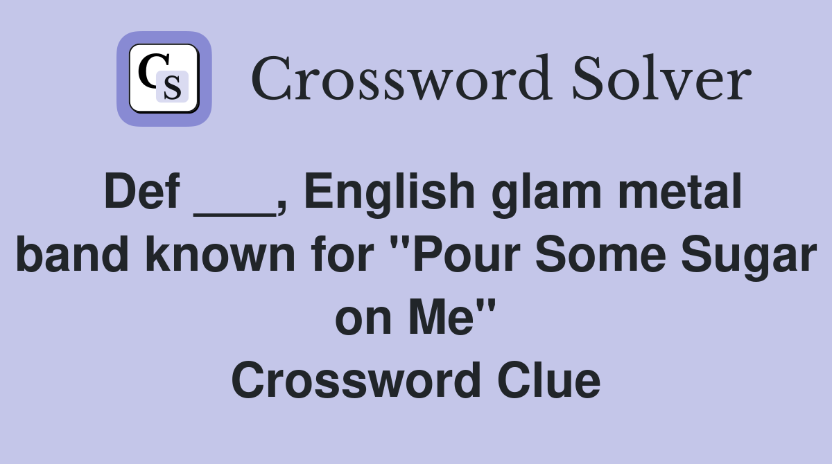 Def English glam metal band known for quot Pour Some Sugar on Me