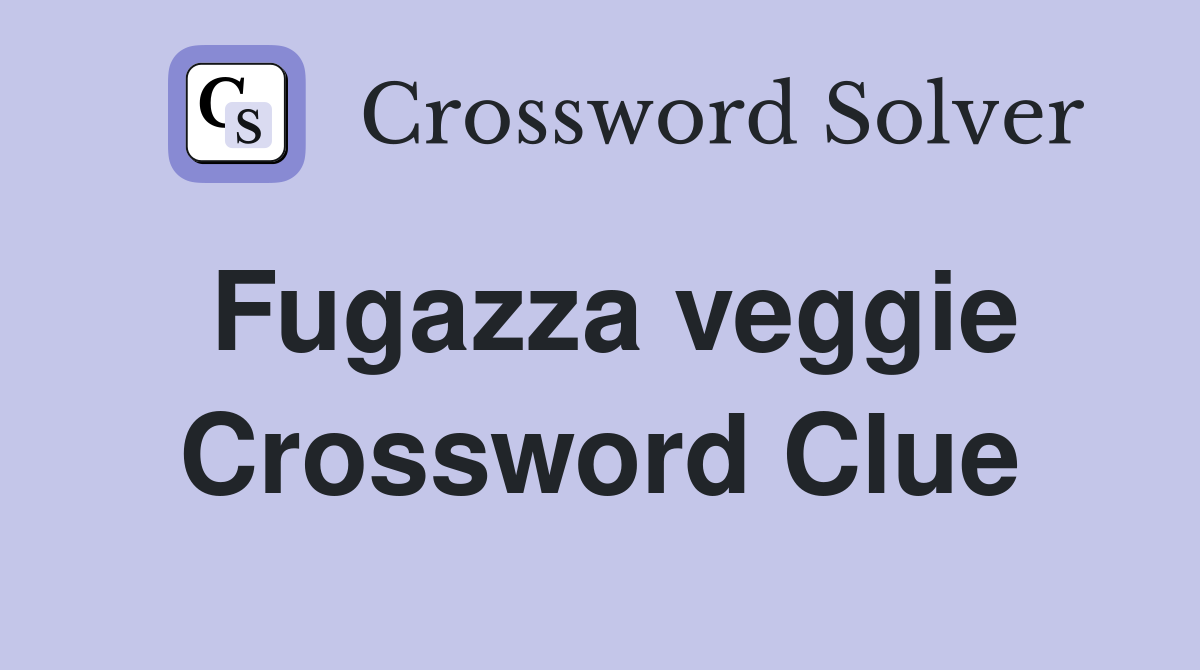 Fugazza veggie Crossword Clue Answers Crossword Solver