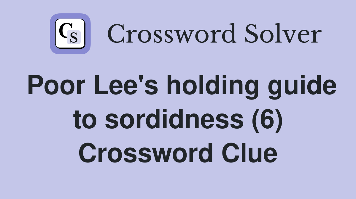 Poor Lee #39 s holding guide to sordidness (6) Crossword Clue Answers