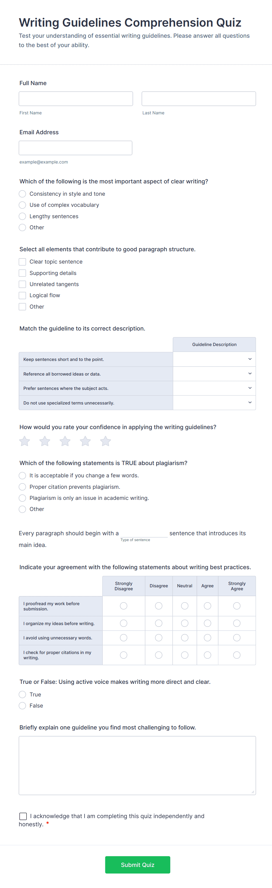 Writing Guidelines Comprehension Quiz Form Template Jotform